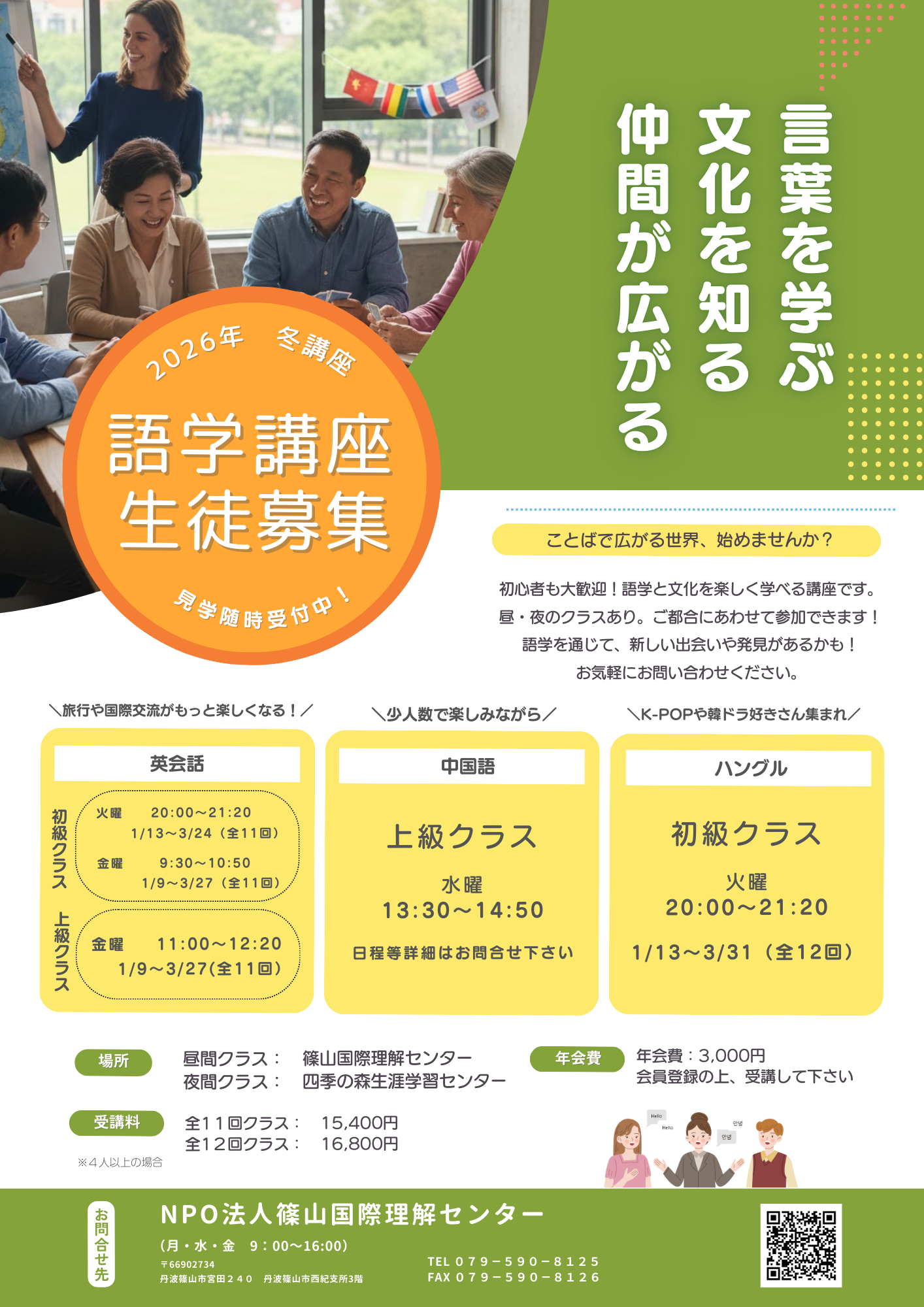 2026年の冬の語学講座の案内です。